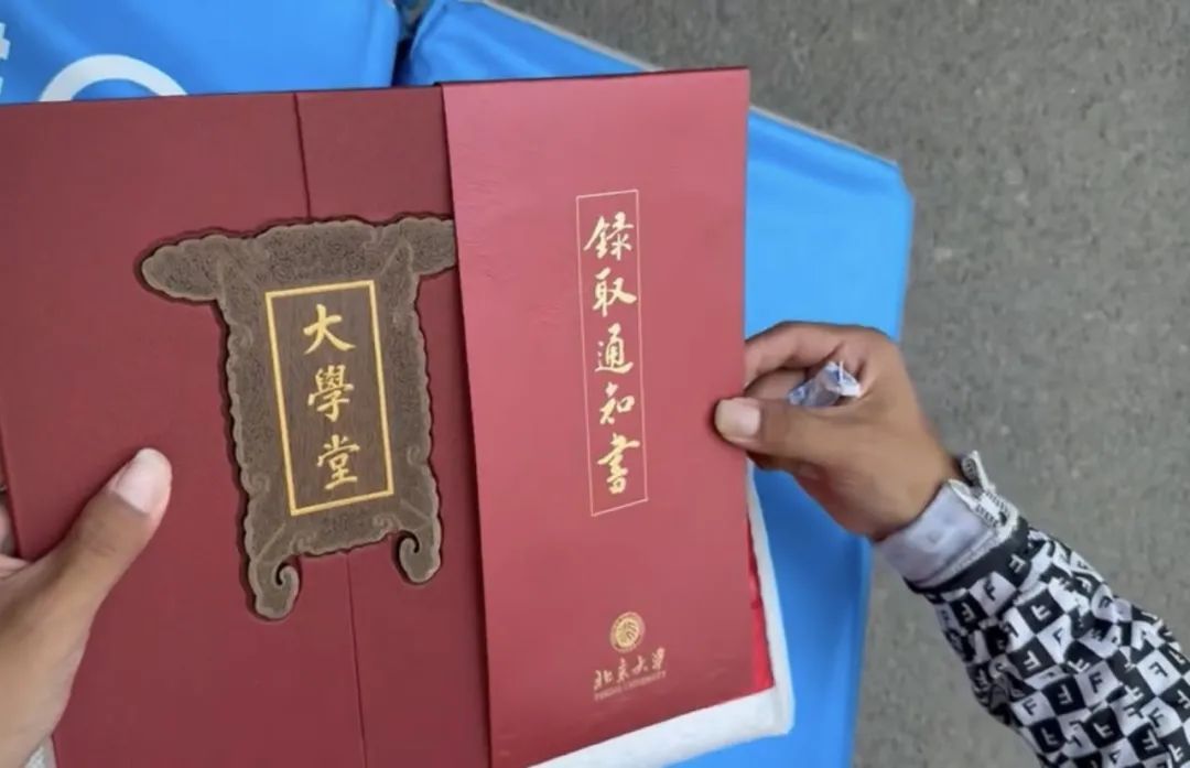 “开箱昆季们,北京大学考取见告书开箱典礼,现时运行了。”在一则发布于2025年8月2日的收集视频里,身穿骑手服的王佳皓在街头,隔断一件来自北京大学的快递,一份写着“大学堂”三个字的大红色考取见告书映入眼帘。