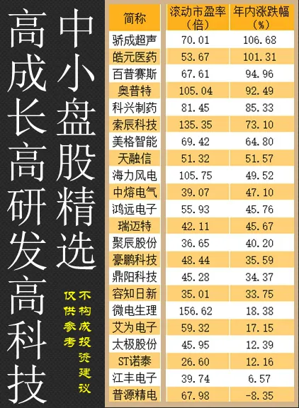 据此,证券时报·数据宝统计出高成长高研发的优质中小盘科技股,筛选条款包括: