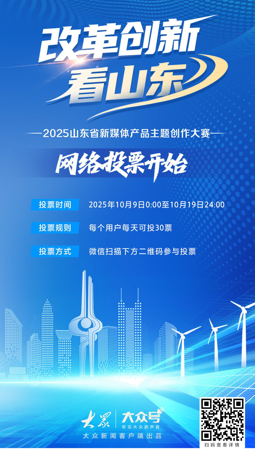 2025年,恰好山东省全面久了改进改进要津之年。新期间的皆鲁地面,正以敢为东说念主先的派头和粉墨登场的莳植,书写着改进改进的壮丽篇章。10月9日,由中共山东省委省直机关职责委员会、天下报业集团(天下日报社)引诱主持的"改进改进看山东"新媒体家具创作大赛开动插足蚁集投票阶段。